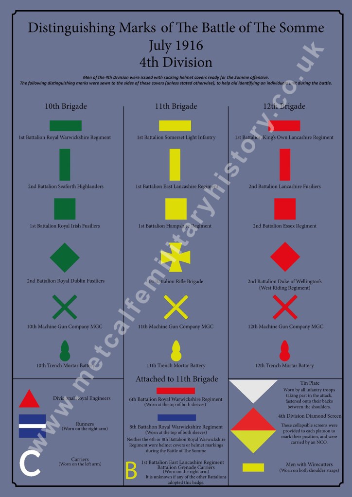 The booklet will cover the markings worn on helmets and uniforms adopted specifically for the battle, as well as those already in use by 1st July 1916. It will also include information on vehicle markings, special flags and ground markers used as well as a host of other information regarding distinguishing marks used during the Somme.