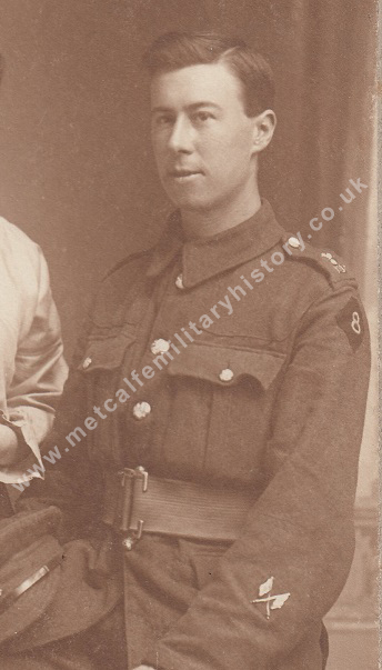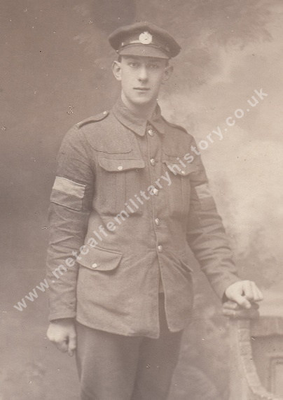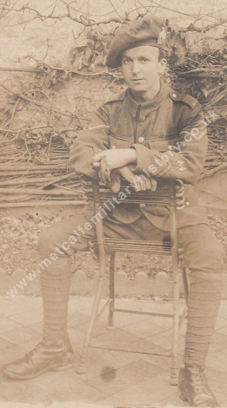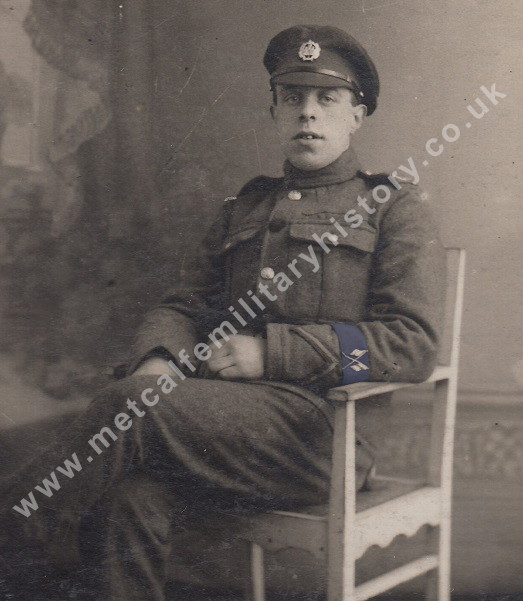 Signaller J Stocks of the RE Signal Service, attached to a Divisional Artillery – Note the artillery gun device attached to his signallers armband.