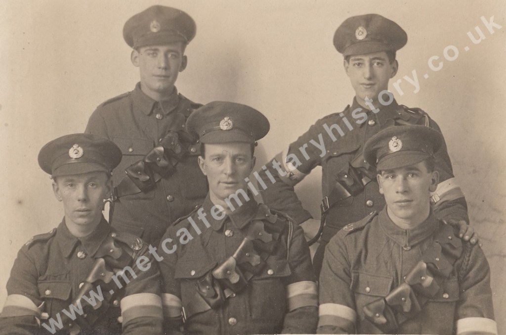Signallers of the Royal West Surrey Regiment – Note the blue armband on the left forearm and the blue cloth slipped onto the shoulder straps.
